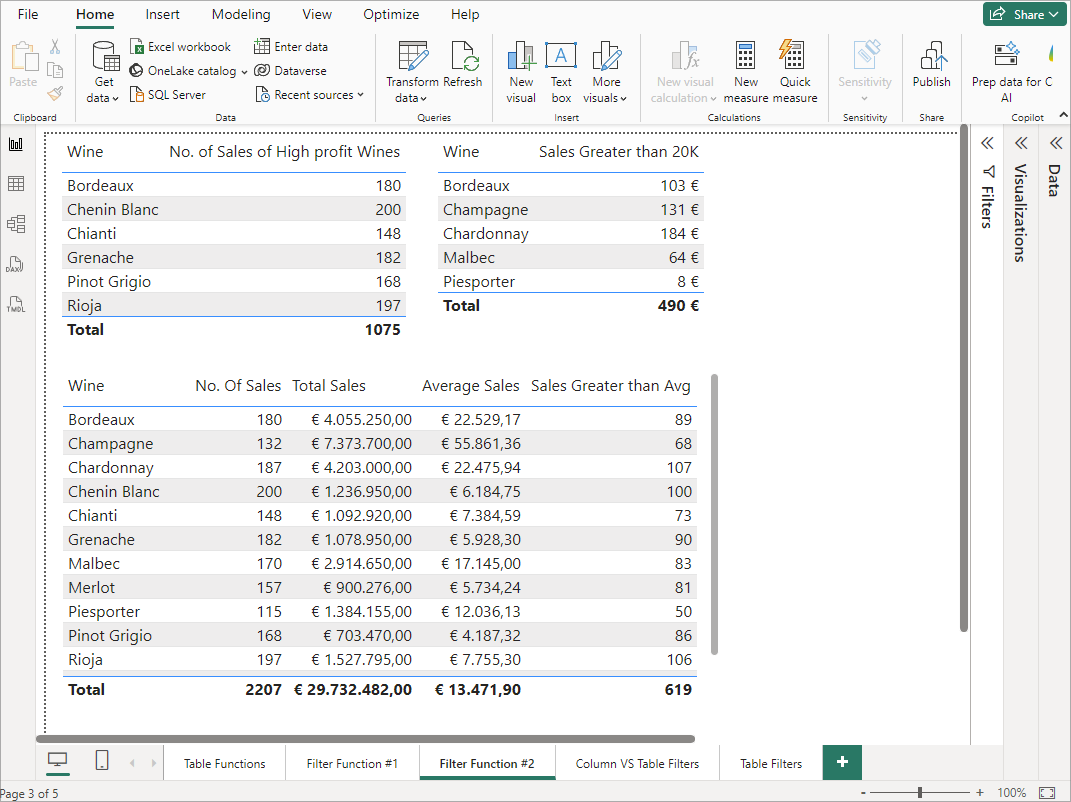 In questo caso, FILTER produce una versione ridotta della tabella Winesales,
