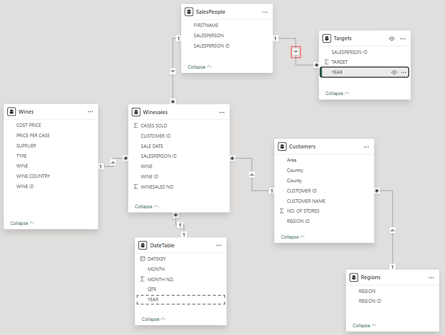 per poter filtrare entrambe le tabelle Winesales e Targets?