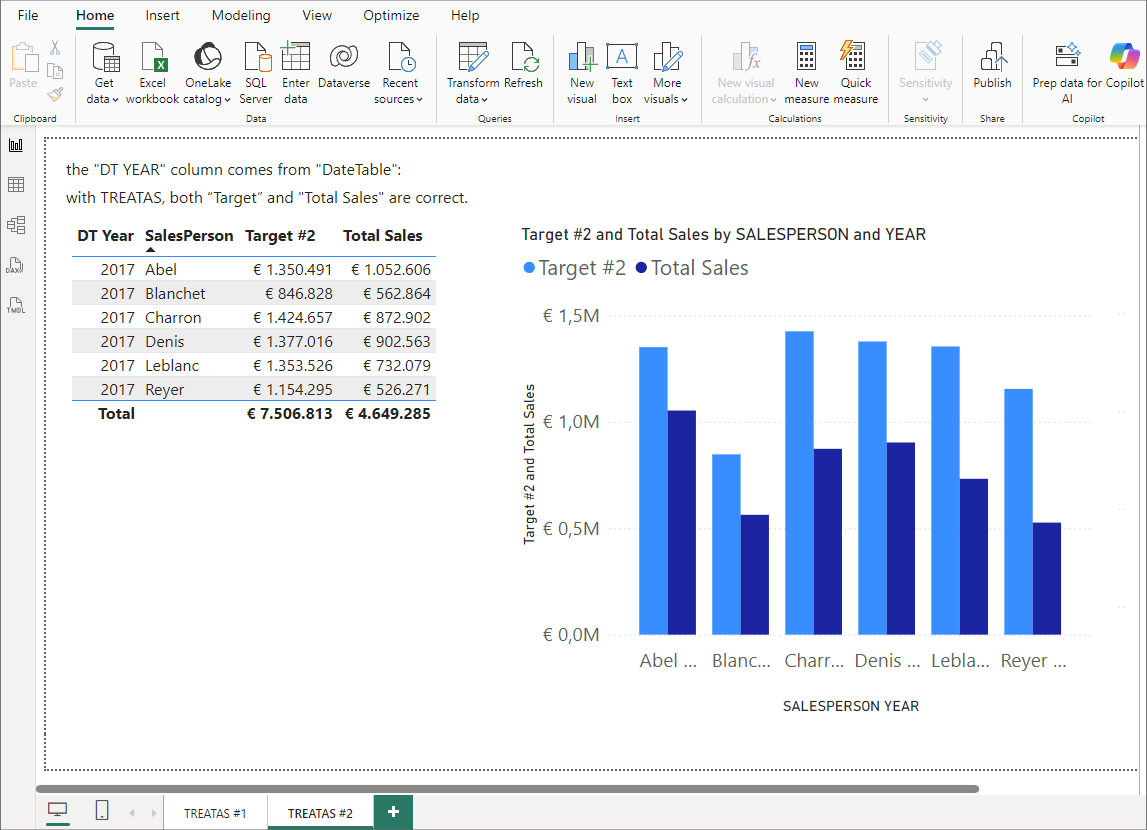 Come vedremo di seguito, TREATAS permette di applicare i valori